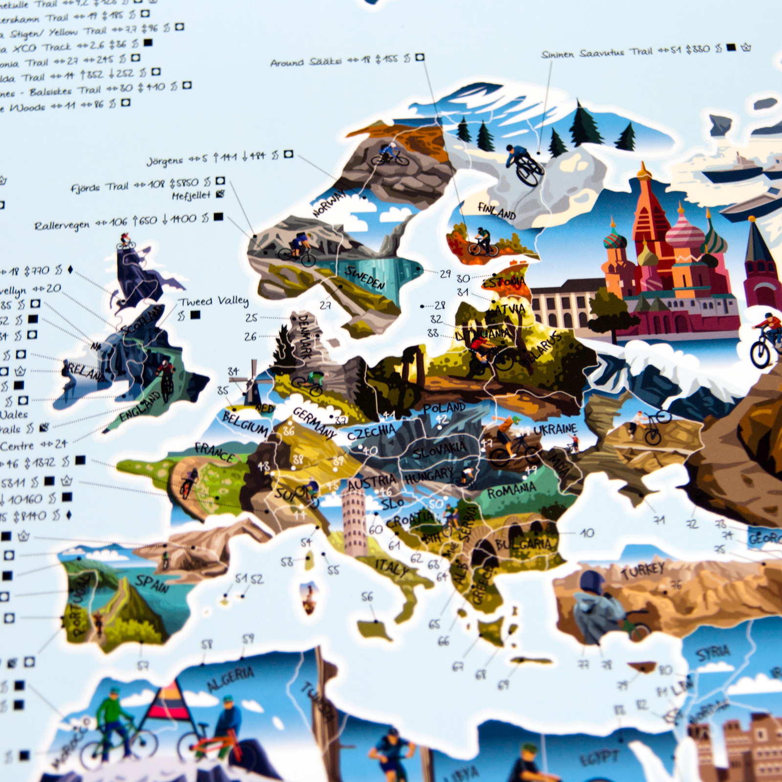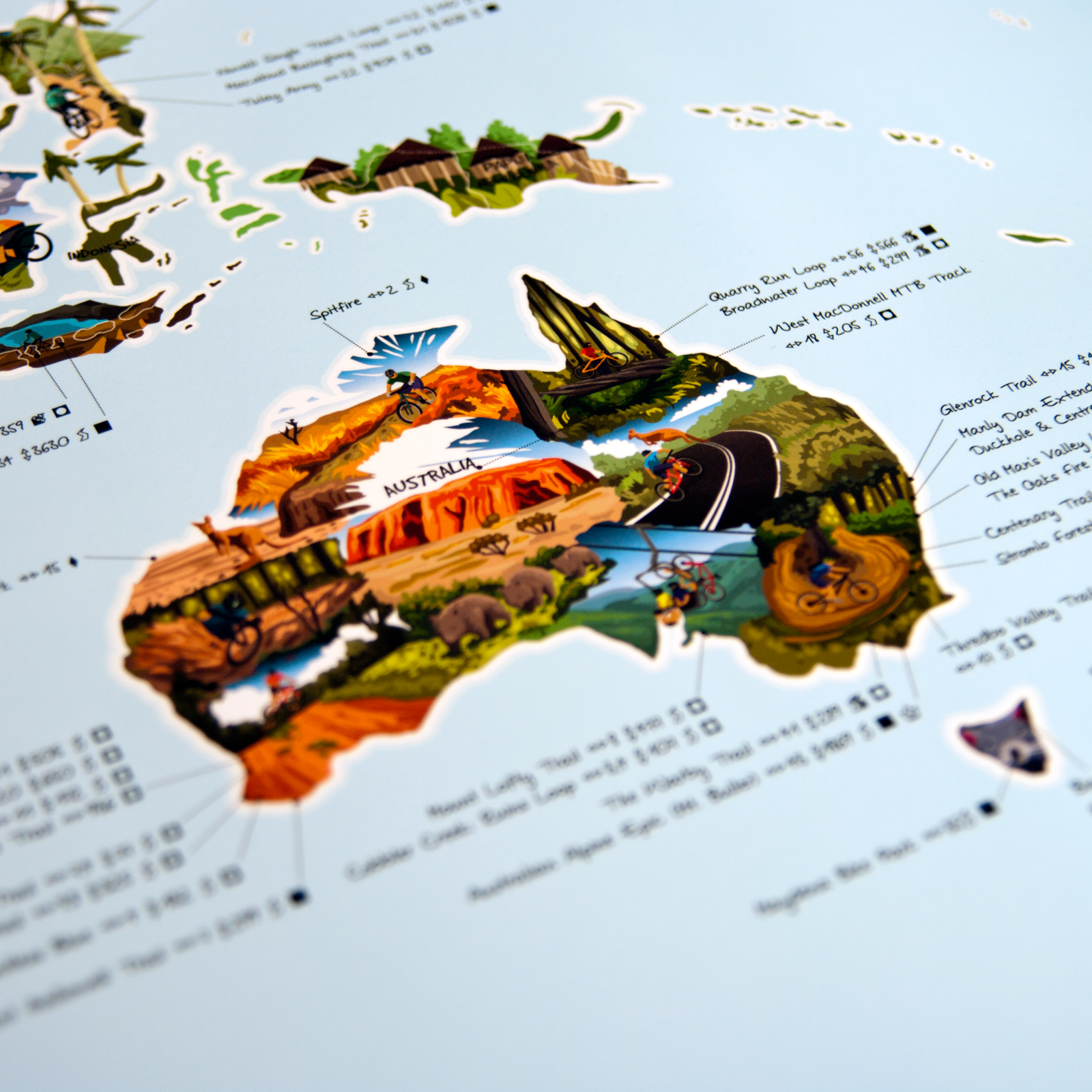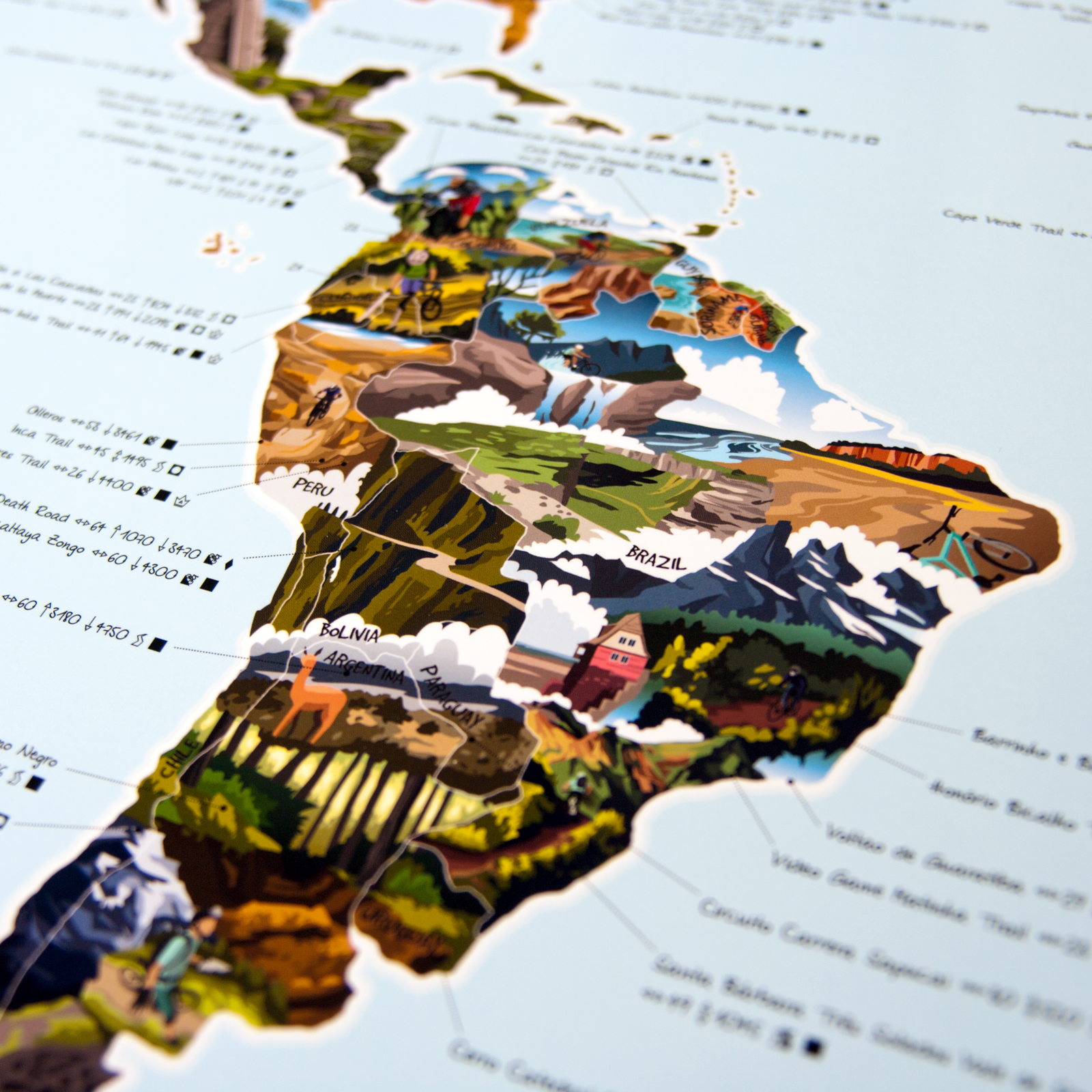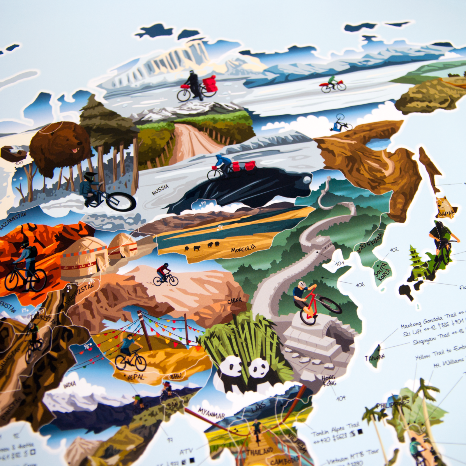In 2018 I was invited by Awesome Maps to create an illustrated map of the world based on the theme of mountain biking.I prepared the map as a vector illustration.